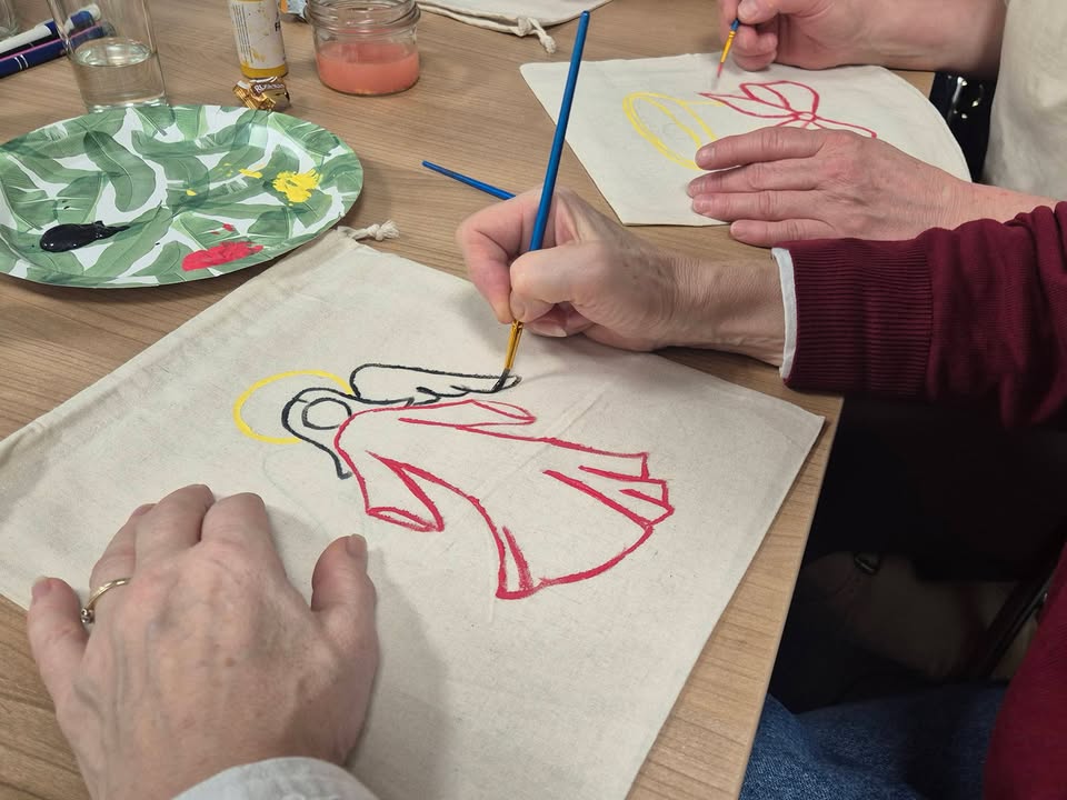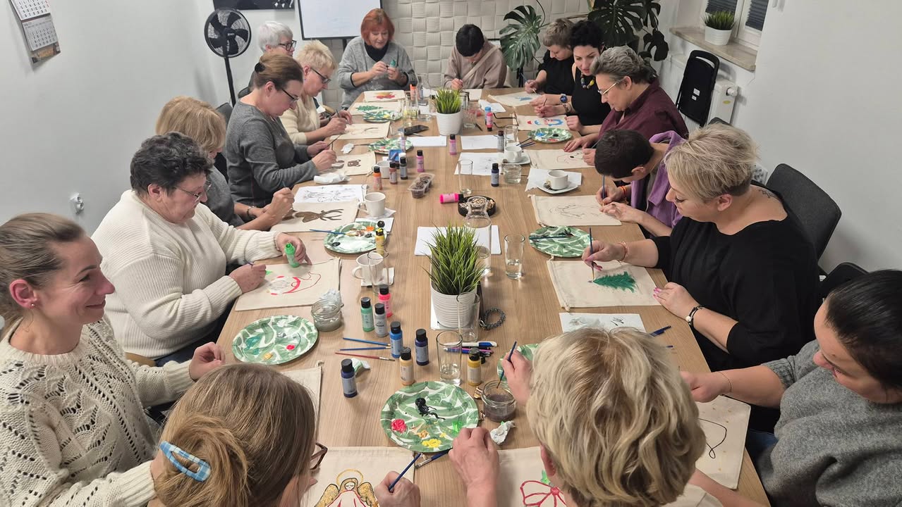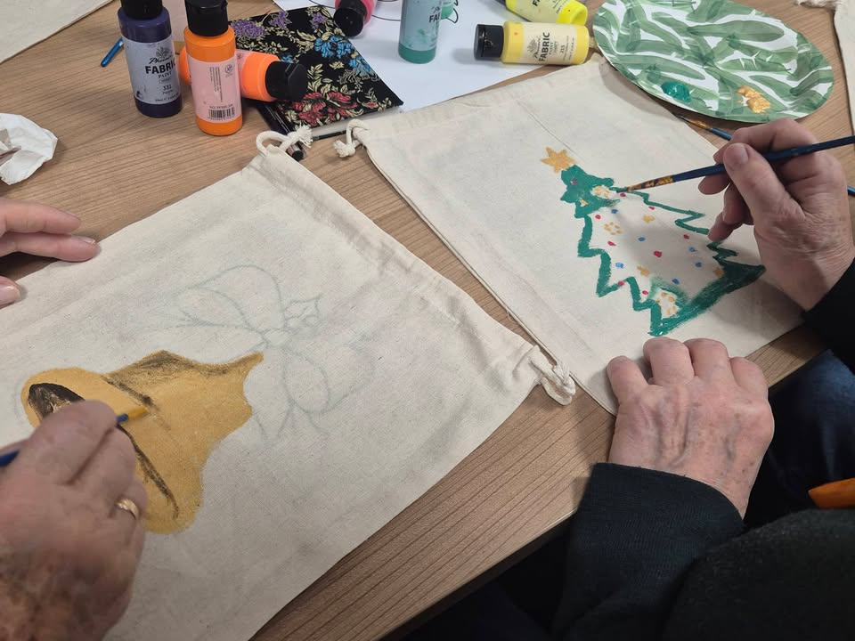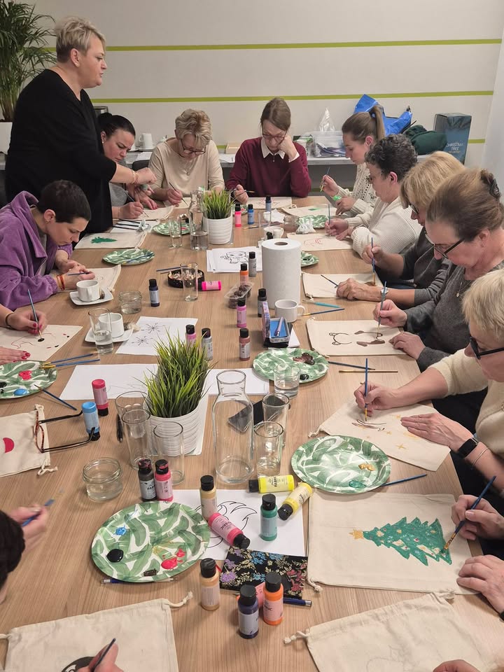 Wczoraj nasze Dzielne Uczestniczki, w swoim własnym rytmie, tworzyły coś bardzo osobistego… 🎨✨ Na zajęciach arteterapii zapanował świąteczny klimat - ciepły, uważny, pełen kolorów i odrobiny magii 🤍✨🎨🪄 Ręcznie malowane woreczki — małe formy o wielkim znaczeniu, bo tworzone dla siebie 🩷 Na prezenty dla siebie – na czułość, na oddech, na „jestem ważna”. 🌿🩷 Każde pociągnięcie pędzla mówiło: dbam o siebie, wybieram siebie i otulałam się miłością🩷