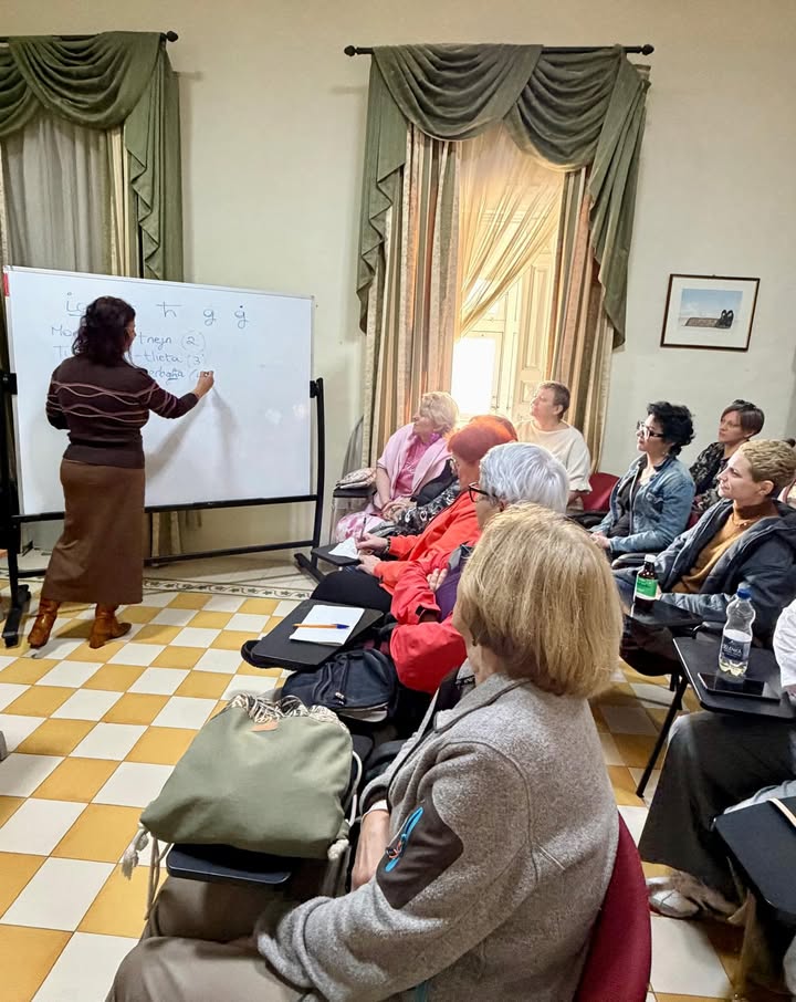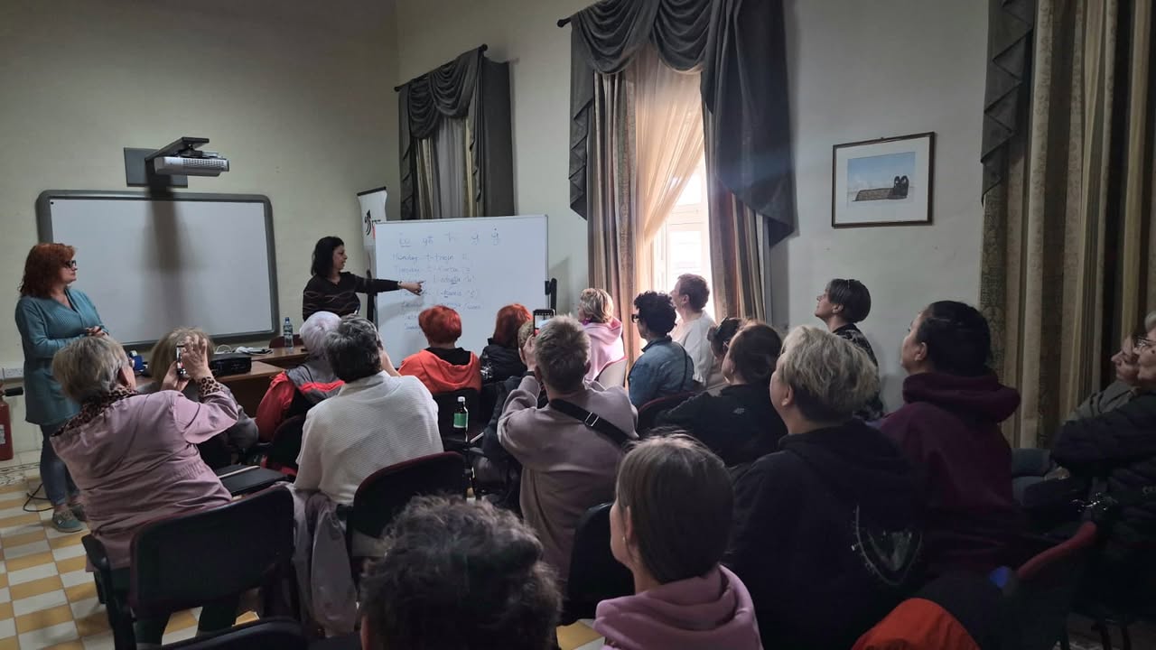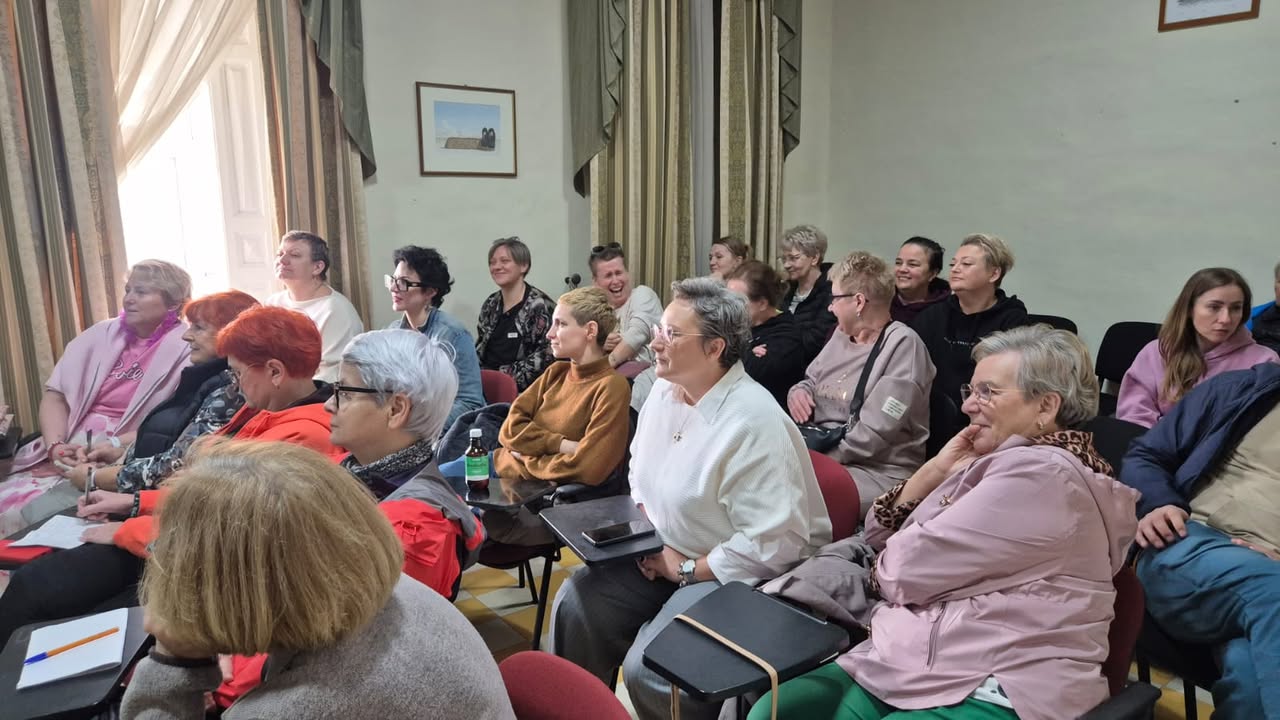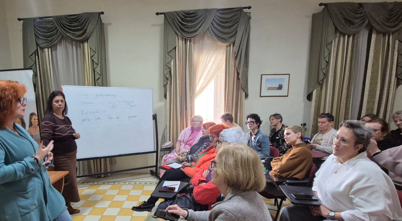 Dzień rozpoczęliśmy od rozgrzewki kulturowej – prezentacji poświęconej Malcie. Był to moment spokojnego wejścia w nową rzeczywistość: poznawaliśmy historię wyspy, jej kulturę, codzienne zwyczaje, a także kontekst społeczny i zdrowotny. Dla wielu uczestniczek było to pierwsze zetknięcie z Maltą nie jako wakacyjnym kierunkiem, ale jako realną przestrzenią życia, relacji i pracy z ludźmi. Ta część pozwoliła oswoić miejsce, w którym będziemy spędzać kolejne dni, i poczuć się w nim bardziej „u siebie”.