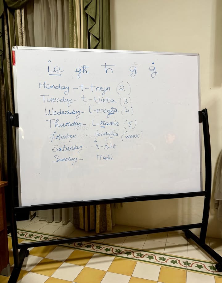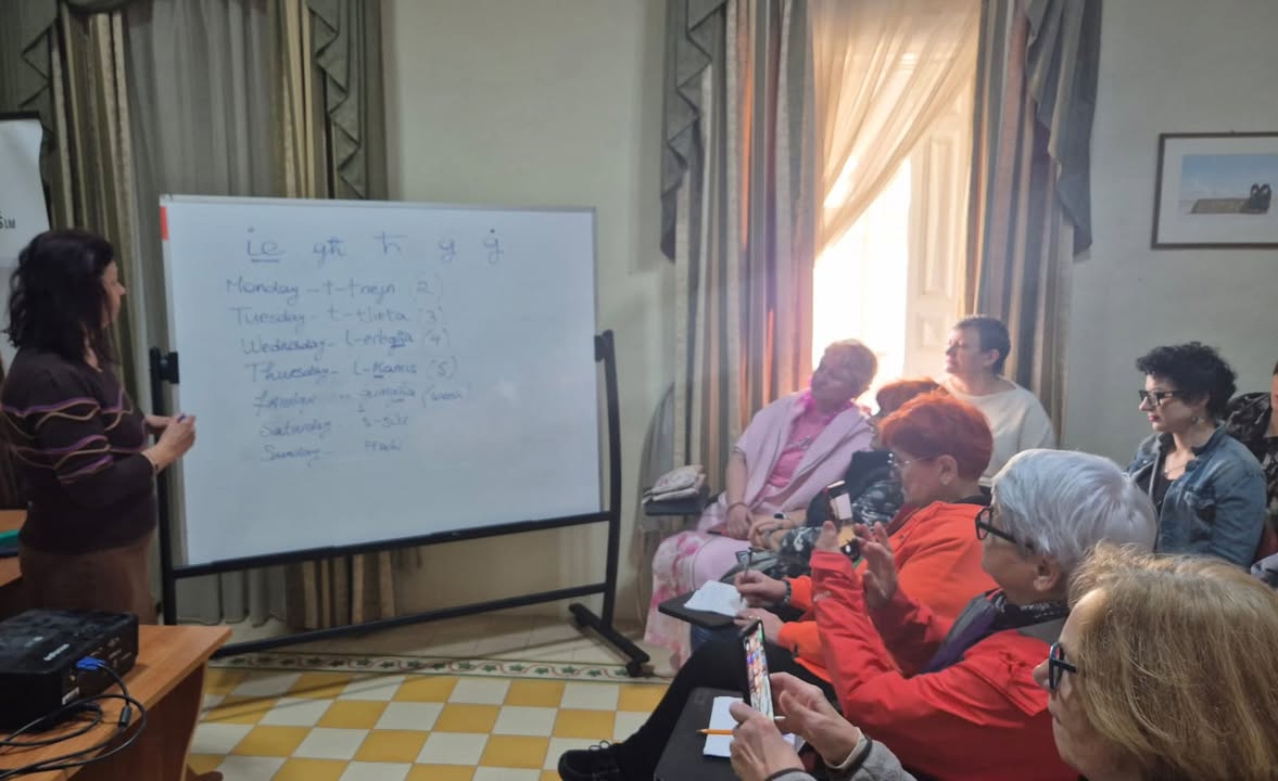 Następnie przeszliśmy do oficjalnego wprowadzenia do mobilności. Poznaliśmy działalność organizacji goszczącej – The Malta Exercise, Health and Fitness Association – oraz osoby, które będą nas wspierać podczas całego pobytu. Był to bardzo ważny moment budowania zaufania i poczucia partnerstwa. Rozmawialiśmy o tym, czym jest zdrowie rozumiane holistycznie, jak łączyć ruch, dobrostan psychiczny i codzienne wybory oraz jak pracować z osobami po doświadczeniu choroby w sposób uważny i bez presji. Dodatkowo pojawił się element, który wywołał wiele uśmiechów – krótka lekcja języka maltańskiego. Kilka podstawowych słów i zwrotów pozwoliło poczuć jeszcze bliższy kontakt z miejscem i kulturą, a także przełamać pierwsze bariery językowe.